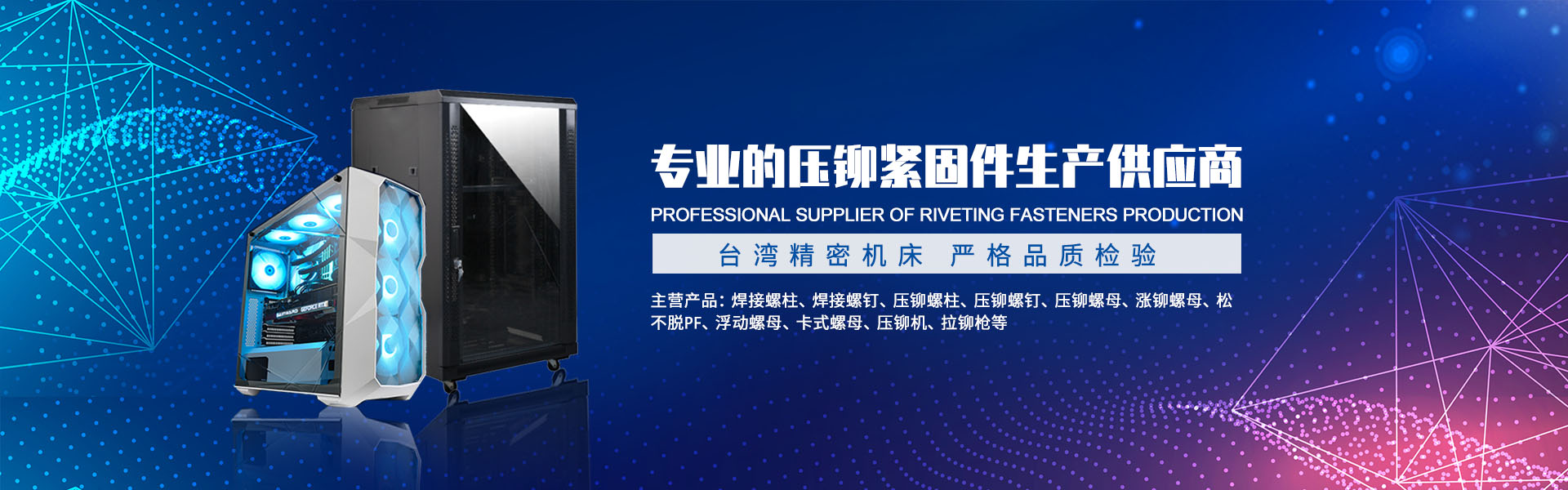 主要產(chǎn)品包括PEM壓鉚緊固件,面板緊固件(松不脫),不銹鋼卡式螺母,部分冷鐓螺母以及非標車制零部件,拉鉚螺母。手動鉚接工具,氣動鉚接工具。代理銷售美國雅固拉(Accuride)電子滑軌,美國索斯科(Southco)鎖具等等國內(nèi)外知名品牌。廣泛地應用于電子機箱,通信設備,機械設備,船舶制造、汽車制造、裝飾裝潢、電器儀表等各種行業(yè)。